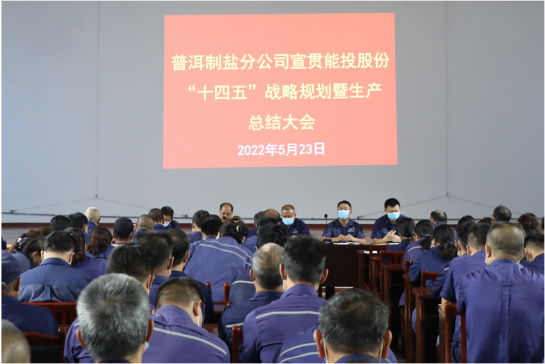 普洱制盐 报道 5月23日,普洱制盐分公司召开能投股份“十四五”战略规划宣贯暨生产总结员工大会。党委副书记、纪委书记周家健主持会议。